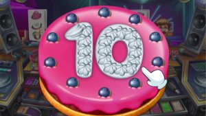 This vibrant venue is a full-blown party, featuring disco balls that sparkle, glowing lights illuminating every corner, and stages surrounded by sound boxes to enhance the festive atmosphere. Players can dive into the fun by crafting burgers, tacos, and—most exciting of all—spectacular cakes. These multi-layered creations can go up to three tiers, topped with a bold “10” to honor the game’s milestone, making every dish feel like a true celebration!